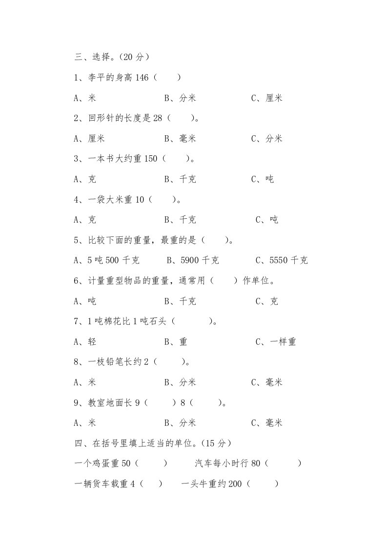 当前位置: 首页小学资源小学三年级正文 三年级数学上册第3单元测试卷2(人教版)_共5页 小学三年级 1 周前 0 0 5 以上为部分内容预览,如需源文档请登录您的会员账号进行下载! 声明:本站所有文章,如无特殊说明或标注,均为本站原创发布。任何个人或组织,在未征得本站同意时,禁止复制、盗用、采集、发布本站内容到任何网站、书籍等各类媒体平台。如若本站内容侵犯了原著者的合法权益,可联系我们进行处理。 尚学资源永久会员 打赏 收藏 海报 链接