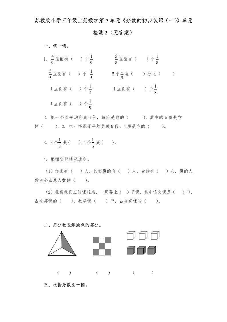 当前位置: 首页小学资源小学三年级正文 三年级数学上册第7单元《分数的初步认识(一)》单元检测2(无答案)(苏教版)_共3页 小学三年级 1 周前 0 0 5 以上为部分内容预览,如需源文档请登录您的会员账号进行下载! 声明:本站所有文章,如无特殊说明或标注,均为本站原创发布。任何个人或组织,在未征得本站同意时,禁止复制、盗用、采集、发布本站内容到任何网站、书籍等各类媒体平台。如若本站内容侵犯了原著者的合法权益,可联系我们进行处理。 尚学资源永久会员 打赏 收藏 海报 链接
