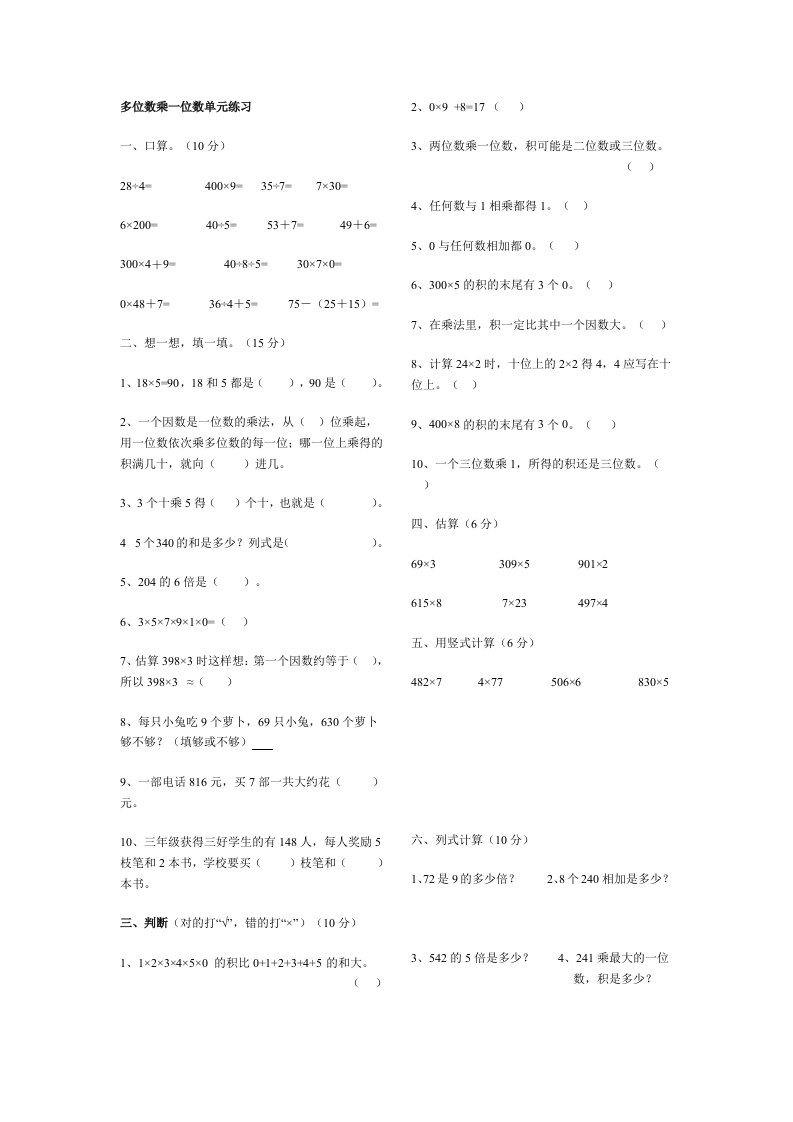 当前位置: 首页小学资源小学三年级正文 三年级数学上册多位数乘一位数单元练习(人教版)_共2页 小学三年级 1 周前 0 0 5 以上为部分内容预览,如需源文档请登录您的会员账号进行下载! 声明:本站所有文章,如无特殊说明或标注,均为本站原创发布。任何个人或组织,在未征得本站同意时,禁止复制、盗用、采集、发布本站内容到任何网站、书籍等各类媒体平台。如若本站内容侵犯了原著者的合法权益,可联系我们进行处理。 尚学资源永久会员 打赏 收藏 海报 链接
