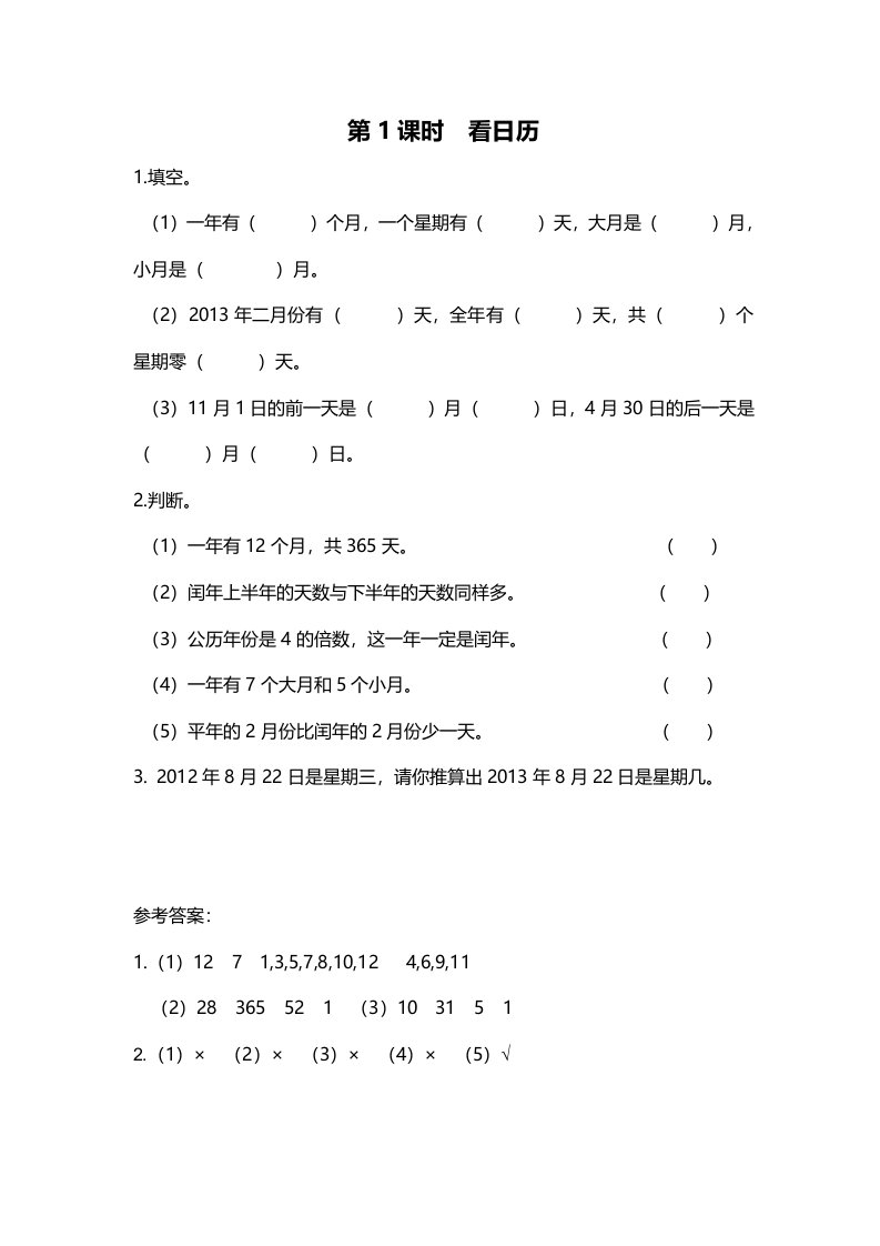 三年级数学上册第1课时看日历(北师大版)_共2页