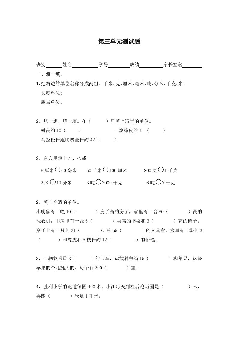当前位置: 首页小学资源小学三年级正文 三年级数学上册第三单元测量测试题(人教版)_共4页 小学三年级 1 周前 0 0 5 以上为部分内容预览,如需源文档请登录您的会员账号进行下载! 声明:本站所有文章,如无特殊说明或标注,均为本站原创发布。任何个人或组织,在未征得本站同意时,禁止复制、盗用、采集、发布本站内容到任何网站、书籍等各类媒体平台。如若本站内容侵犯了原著者的合法权益,可联系我们进行处理。 尚学资源永久会员 打赏 收藏 海报 链接