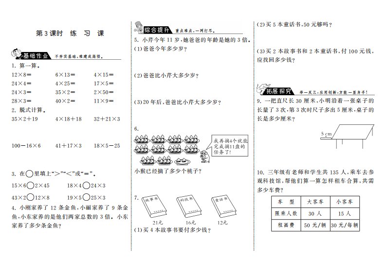 当前位置: 首页小学资源小学三年级正文 三年级数学上册4.3练习课·(北师大版)_共2页 小学三年级 1 周前 0 0 5 以上为部分内容预览,如需源文档请登录您的会员账号进行下载! 声明:本站所有文章,如无特殊说明或标注,均为本站原创发布。任何个人或组织,在未征得本站同意时,禁止复制、盗用、采集、发布本站内容到任何网站、书籍等各类媒体平台。如若本站内容侵犯了原著者的合法权益,可联系我们进行处理。 尚学资源永久会员 打赏 收藏 海报 链接