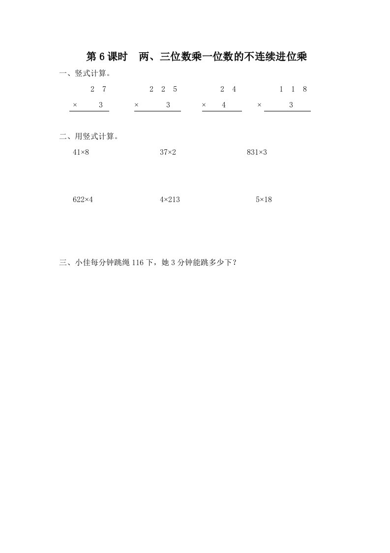 当前位置: 首页小学资源小学三年级正文 三年级数学上册第6课时两、三位数乘一位数的不连续进位乘(苏教版)_共2页 小学三年级 1 周前 0 0 5 以上为部分内容预览,如需源文档请登录您的会员账号进行下载! 声明:本站所有文章,如无特殊说明或标注,均为本站原创发布。任何个人或组织,在未征得本站同意时,禁止复制、盗用、采集、发布本站内容到任何网站、书籍等各类媒体平台。如若本站内容侵犯了原著者的合法权益,可联系我们进行处理。 尚学资源永久会员 打赏 收藏 海报 链接