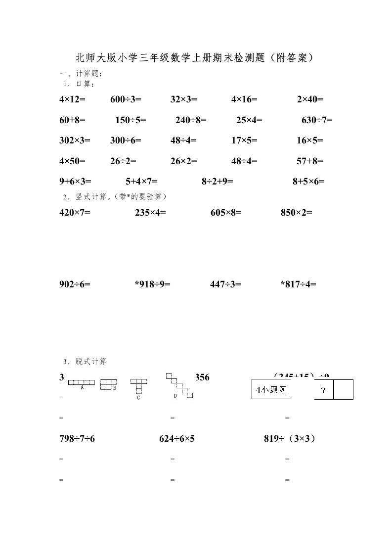 三年级数学上册期末练习(3)(北师大版)_共13页
