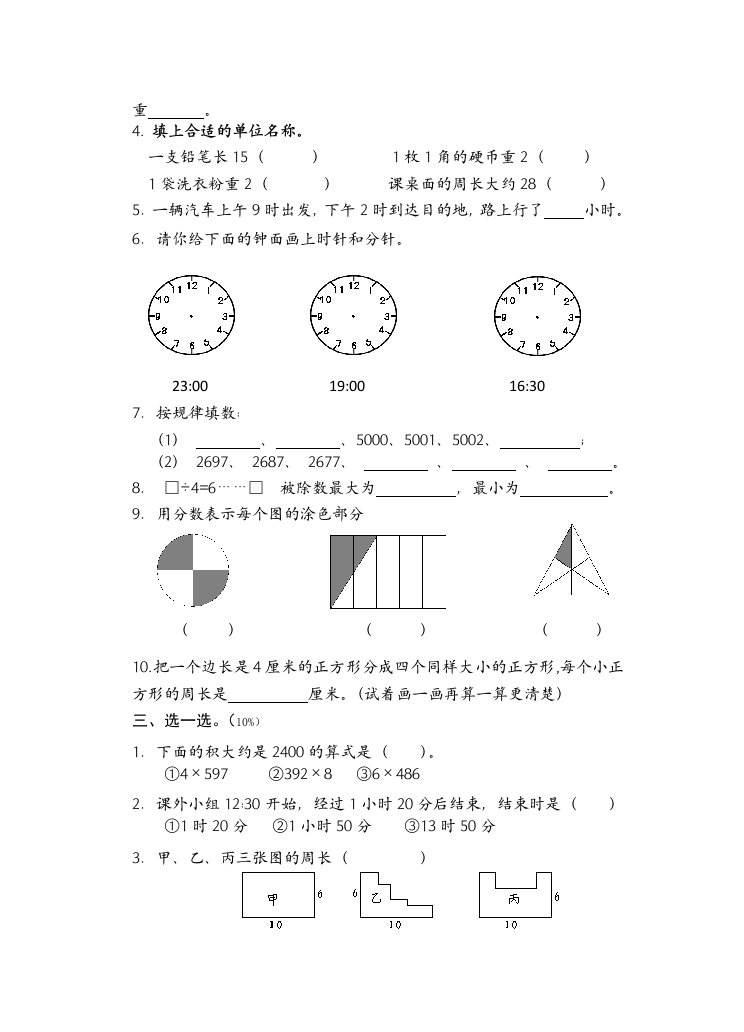 当前位置: 首页小学资源小学三年级正文 三年级数学上册期末考试题(2)(苏教版)_共5页 小学三年级 1 周前 0 0 5 以上为部分内容预览,如需源文档请登录您的会员账号进行下载! 声明:本站所有文章,如无特殊说明或标注,均为本站原创发布。任何个人或组织,在未征得本站同意时,禁止复制、盗用、采集、发布本站内容到任何网站、书籍等各类媒体平台。如若本站内容侵犯了原著者的合法权益,可联系我们进行处理。 尚学资源永久会员 打赏 收藏 海报 链接