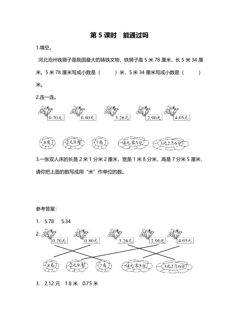 三年级数学上册第5课时能通过吗(北师大版)_共1页