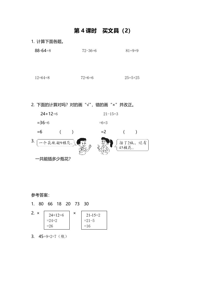 三年级数学上册第4课时买文具(2)(北师大版)_共1页