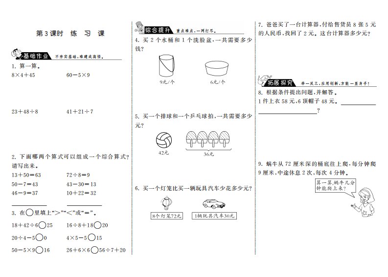 当前位置: 首页小学资源小学三年级正文 三年级数学上册1.3练习课·(北师大版)_共2页 小学三年级 1 周前 0 0 5 以上为部分内容预览,如需源文档请登录您的会员账号进行下载! 声明:本站所有文章,如无特殊说明或标注,均为本站原创发布。任何个人或组织,在未征得本站同意时,禁止复制、盗用、采集、发布本站内容到任何网站、书籍等各类媒体平台。如若本站内容侵犯了原著者的合法权益,可联系我们进行处理。 尚学资源永久会员 打赏 收藏 海报 链接