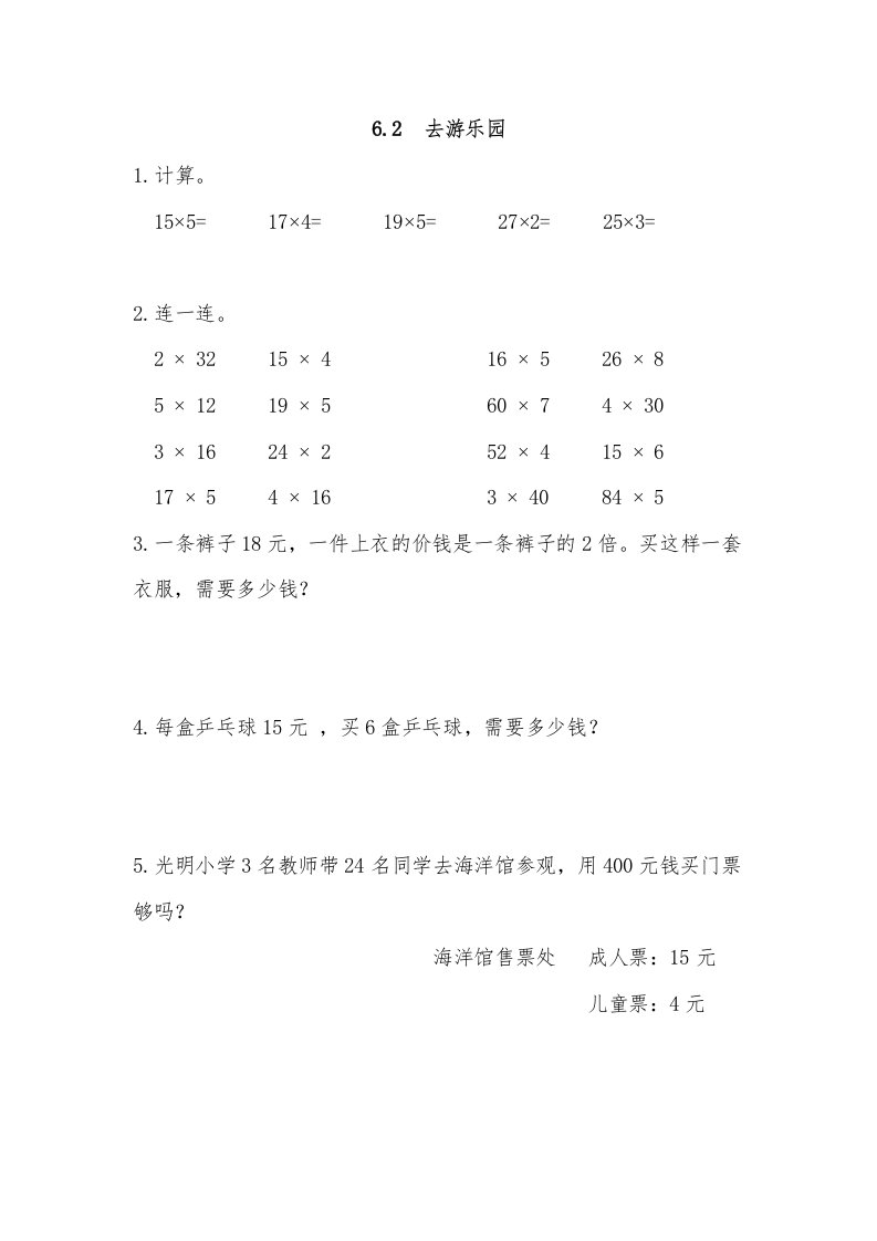 三年级数学上册6.2去游乐园(北师大版)_共2页