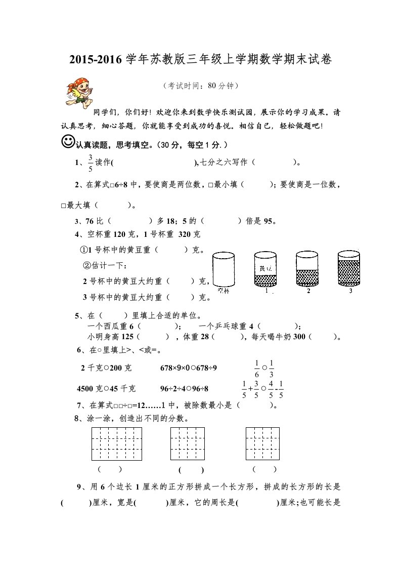 当前位置: 首页小学资源小学三年级正文 三年级数学上册期末模拟试卷(苏教版)_共6页 小学三年级 1 周前 0 0 5 以上为部分内容预览,如需源文档请登录您的会员账号进行下载! 声明:本站所有文章,如无特殊说明或标注,均为本站原创发布。任何个人或组织,在未征得本站同意时,禁止复制、盗用、采集、发布本站内容到任何网站、书籍等各类媒体平台。如若本站内容侵犯了原著者的合法权益,可联系我们进行处理。 尚学资源永久会员 打赏 收藏 海报 链接