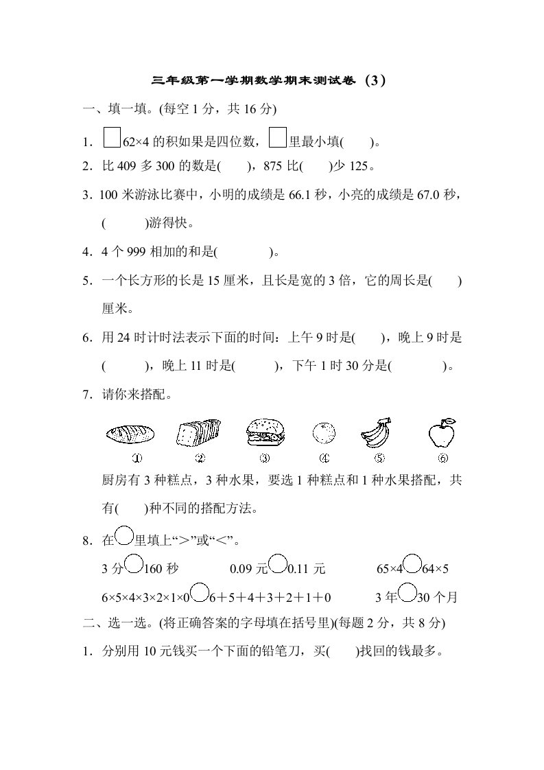 当前位置: 首页小学资源小学三年级正文 三年级数学上册期末测试卷(3)(北师大版)_共9页 小学三年级 1 周前 0 0 5 以上为部分内容预览,如需源文档请登录您的会员账号进行下载! 声明:本站所有文章,如无特殊说明或标注,均为本站原创发布。任何个人或组织,在未征得本站同意时,禁止复制、盗用、采集、发布本站内容到任何网站、书籍等各类媒体平台。如若本站内容侵犯了原著者的合法权益,可联系我们进行处理。 尚学资源永久会员 打赏 收藏 海报 链接