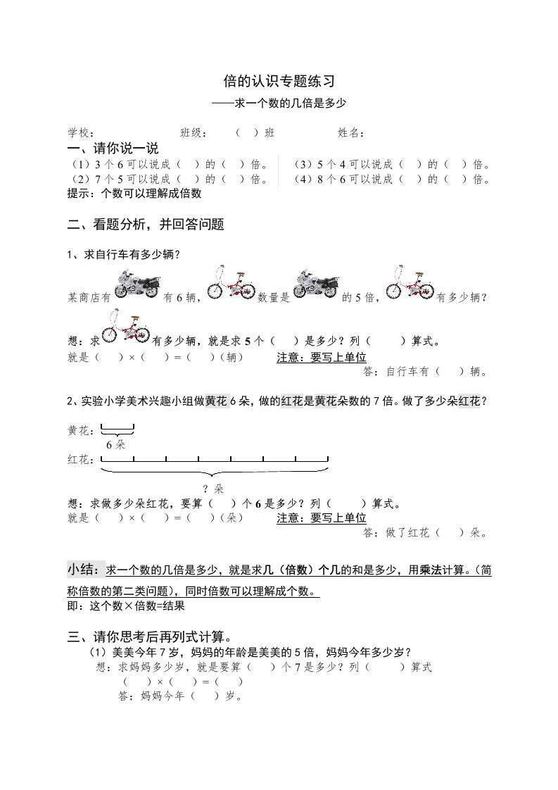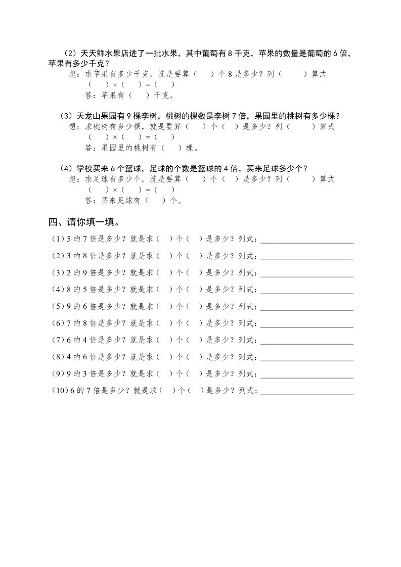 当前位置: 首页小学资源小学三年级正文 三年级数学上册倍的认识专题练习:求一个数的几倍是多少(人教版)_共3页 小学三年级 1 周前 0 0 5 以上为部分内容预览,如需源文档请登录您的会员账号进行下载! 声明:本站所有文章,如无特殊说明或标注,均为本站原创发布。任何个人或组织,在未征得本站同意时,禁止复制、盗用、采集、发布本站内容到任何网站、书籍等各类媒体平台。如若本站内容侵犯了原著者的合法权益,可联系我们进行处理。 尚学资源永久会员 打赏 收藏 海报 链接