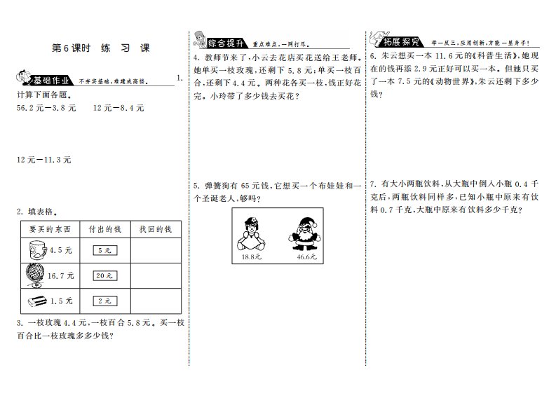 三年级数学上册8.6练习课·(北师大版)_共2页