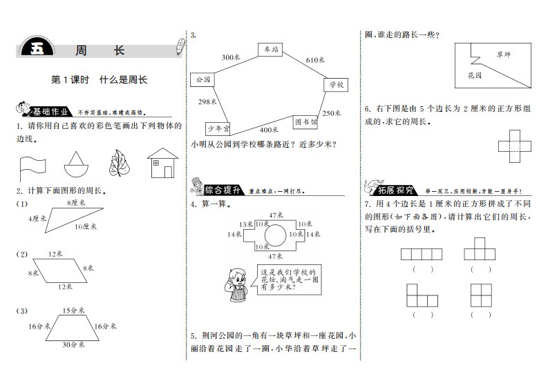 三年级数学上册5.1什么是周长·(北师大版)_共2页