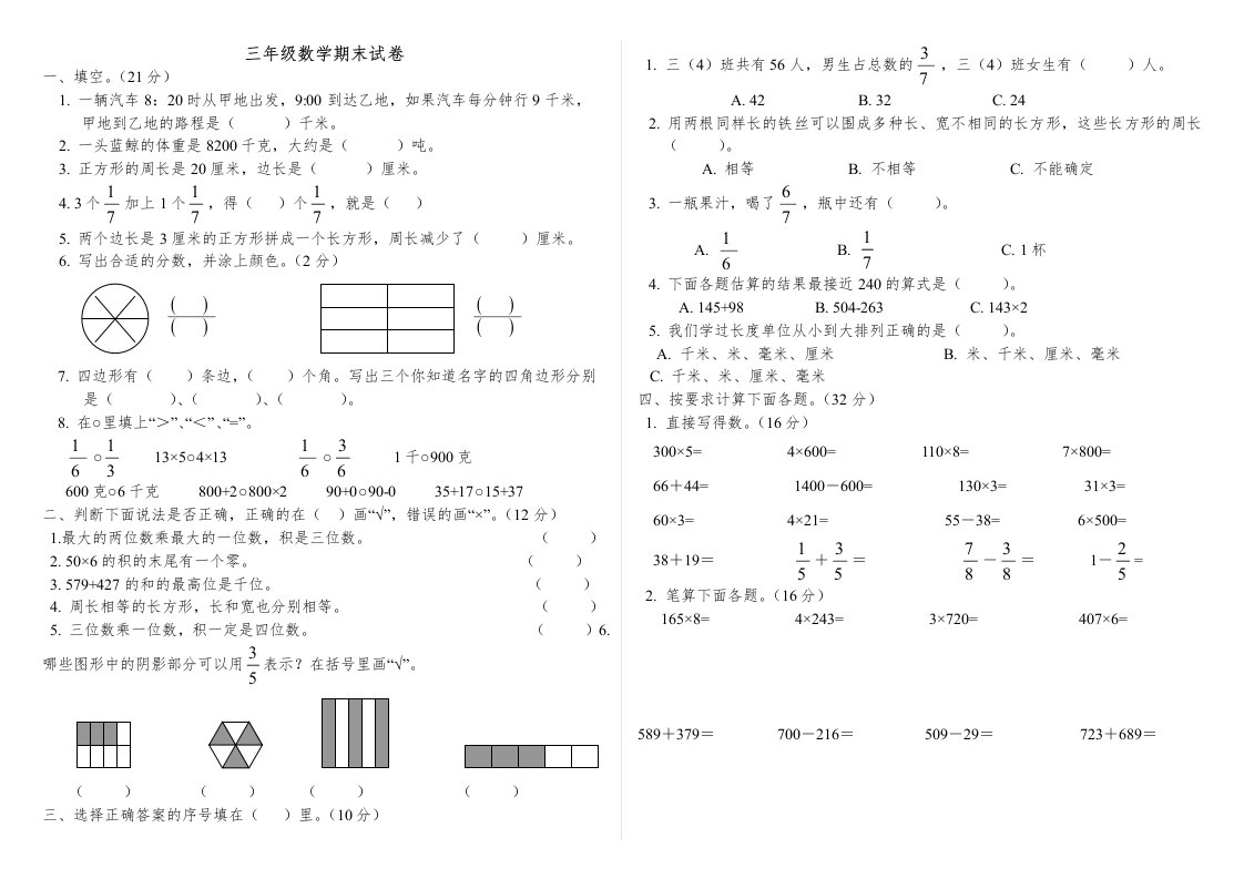 当前位置: 首页小学资源小学三年级正文 三年级数学上册最期末试卷(全)(人教版)_共15页 小学三年级 1 周前 0 0 10 以上为部分内容预览,如需源文档请登录您的会员账号进行下载! 声明:本站所有文章,如无特殊说明或标注,均为本站原创发布。任何个人或组织,在未征得本站同意时,禁止复制、盗用、采集、发布本站内容到任何网站、书籍等各类媒体平台。如若本站内容侵犯了原著者的合法权益,可联系我们进行处理。 尚学资源永久会员 打赏 收藏 海报 链接