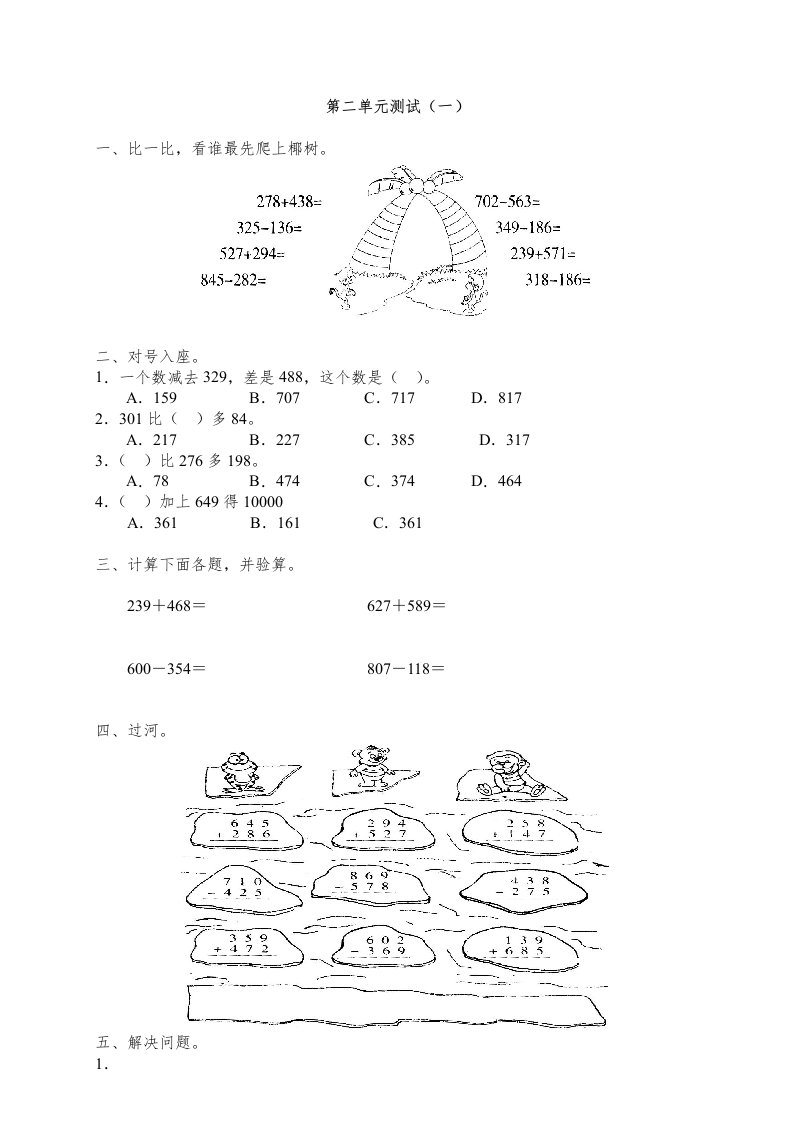 三年级数学上册第二单元《万以内的加减法》测试卷(一)1(人教版)_共4页