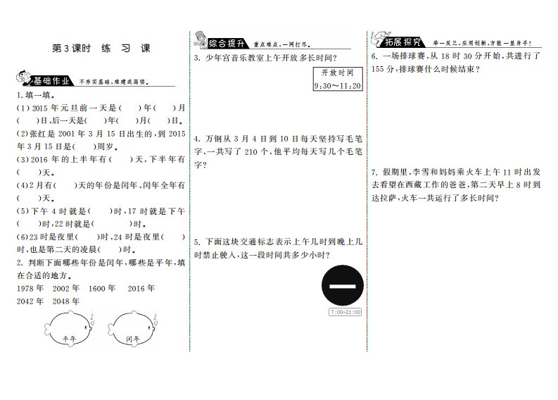 三年级数学上册7.3练习课·(北师大版)_共2页