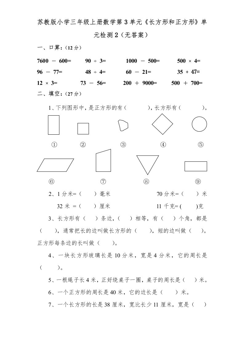 当前位置: 首页小学资源小学三年级正文 三年级数学上册第3单元《长方形和正方形》单元检测2(无答案)(苏教版)_共4页 小学三年级 1 周前 0 0 5 以上为部分内容预览,如需源文档请登录您的会员账号进行下载! 声明:本站所有文章,如无特殊说明或标注,均为本站原创发布。任何个人或组织,在未征得本站同意时,禁止复制、盗用、采集、发布本站内容到任何网站、书籍等各类媒体平台。如若本站内容侵犯了原著者的合法权益,可联系我们进行处理。 尚学资源永久会员 打赏 收藏 海报 链接