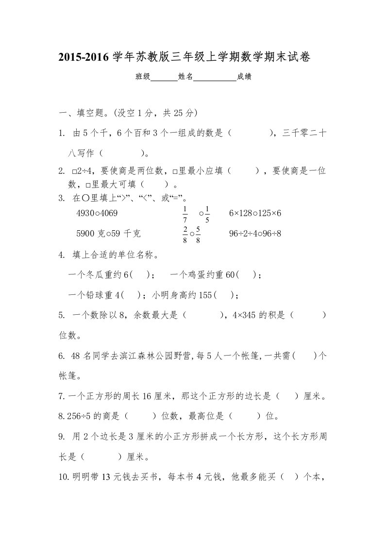 当前位置: 首页小学资源小学三年级正文 三年级数学上册新优秀期末评估试卷(苏教版)_共4页 小学三年级 1 周前 0 0 5 以上为部分内容预览,如需源文档请登录您的会员账号进行下载! 声明:本站所有文章,如无特殊说明或标注,均为本站原创发布。任何个人或组织,在未征得本站同意时,禁止复制、盗用、采集、发布本站内容到任何网站、书籍等各类媒体平台。如若本站内容侵犯了原著者的合法权益,可联系我们进行处理。 尚学资源永久会员 打赏 收藏 海报 链接