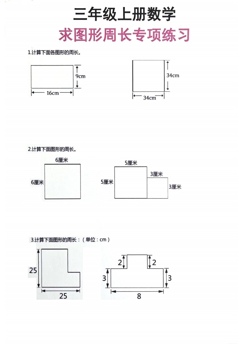 三年级上册数学周长专项练习_共8页