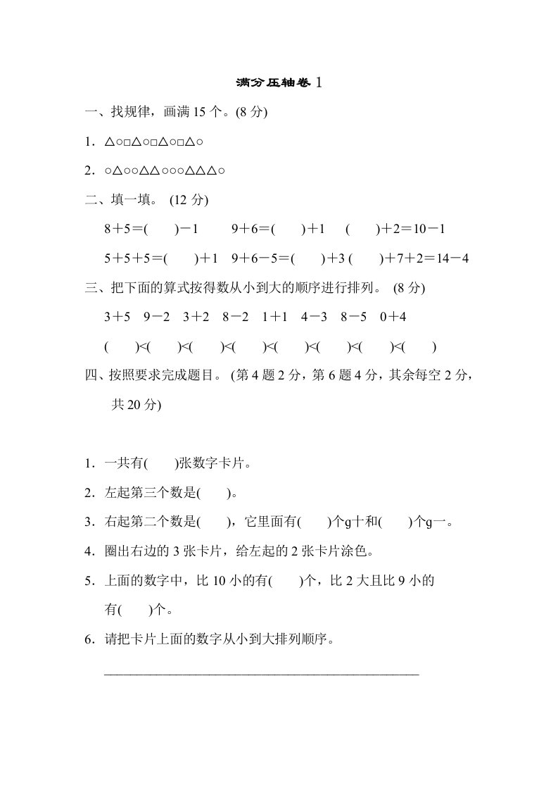 当前位置: 首页小学资源小学一年级正文 一年级数学上册满分压轴卷1(苏教版)_共3页 小学一年级 2 周前 0 0 5 以上为部分内容预览,如需源文档请登录您的会员账号进行下载! 声明:本站所有文章,如无特殊说明或标注,均为本站原创发布。任何个人或组织,在未征得本站同意时,禁止复制、盗用、采集、发布本站内容到任何网站、书籍等各类媒体平台。如若本站内容侵犯了原著者的合法权益,可联系我们进行处理。 尚学资源永久会员 打赏 收藏 海报 链接