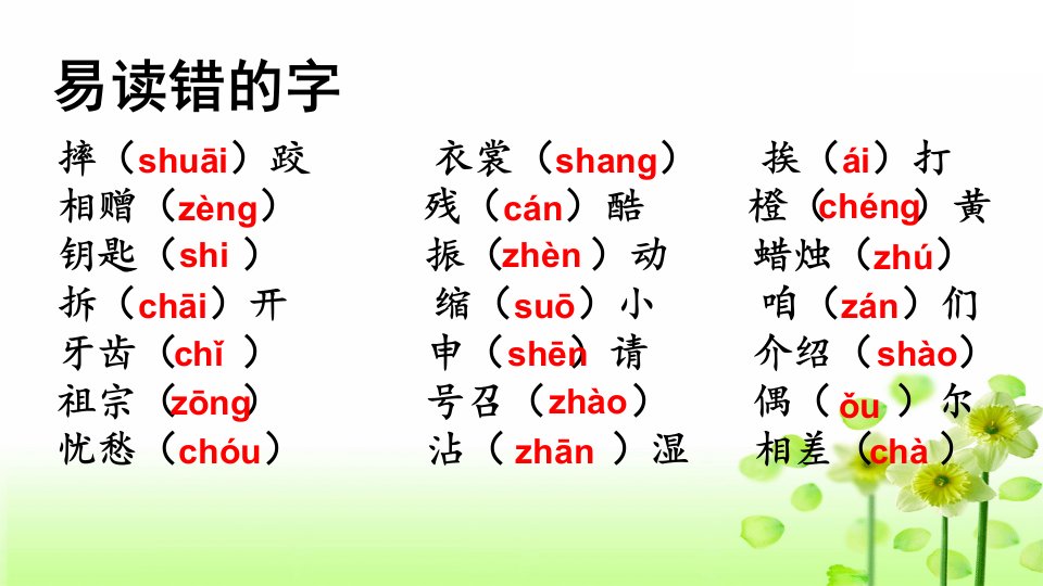 当前位置: 首页小学资源小学三年级正文 三年级语文上册专项1生字复习课件(部编版)_共22页 小学三年级 1 周前 0 0 15 以上为部分内容预览,如需源文档请登录您的会员账号进行下载! 声明:本站所有文章,如无特殊说明或标注,均为本站原创发布。任何个人或组织,在未征得本站同意时,禁止复制、盗用、采集、发布本站内容到任何网站、书籍等各类媒体平台。如若本站内容侵犯了原著者的合法权益,可联系我们进行处理。 尚学资源永久会员 打赏 收藏 海报 链接