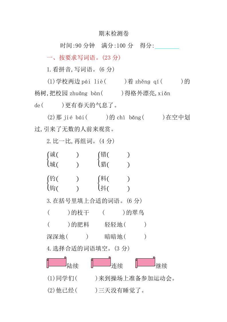 当前位置: 首页小学资源小学三年级正文 三年级语文上册期末检测卷(部编版)_共8页 小学三年级 1 周前 0 0 5 以上为部分内容预览,如需源文档请登录您的会员账号进行下载! 声明:本站所有文章,如无特殊说明或标注,均为本站原创发布。任何个人或组织,在未征得本站同意时,禁止复制、盗用、采集、发布本站内容到任何网站、书籍等各类媒体平台。如若本站内容侵犯了原著者的合法权益,可联系我们进行处理。 尚学资源永久会员 打赏 收藏 海报 链接