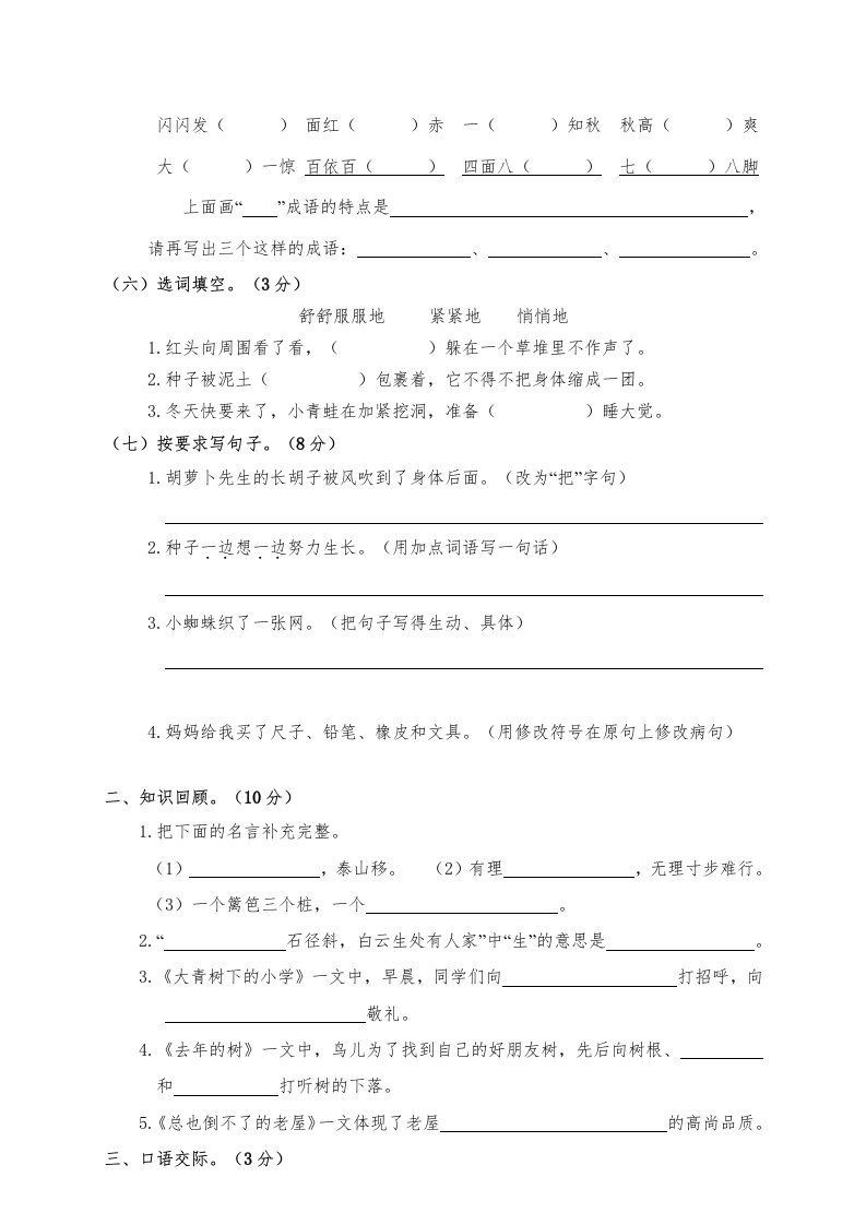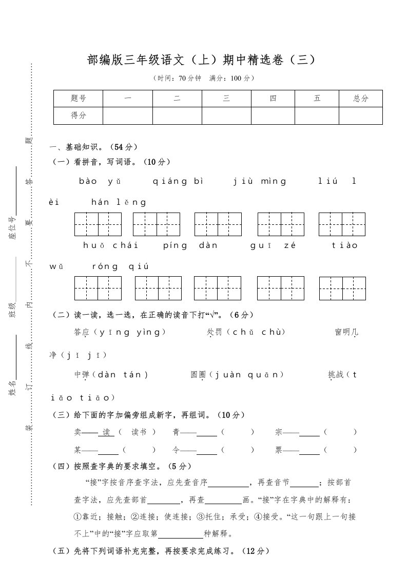 三年级语文上册3.期中精选卷(三)(部编版)_共7页