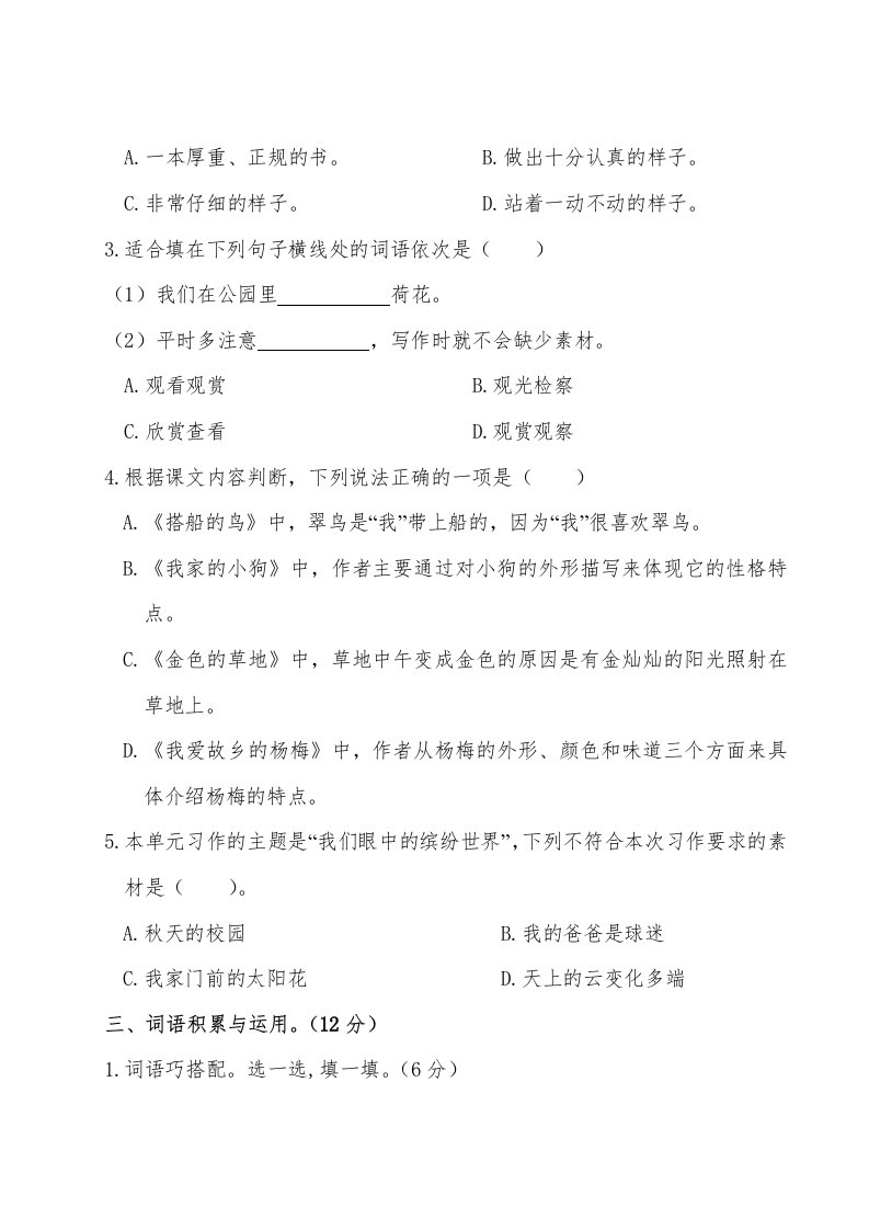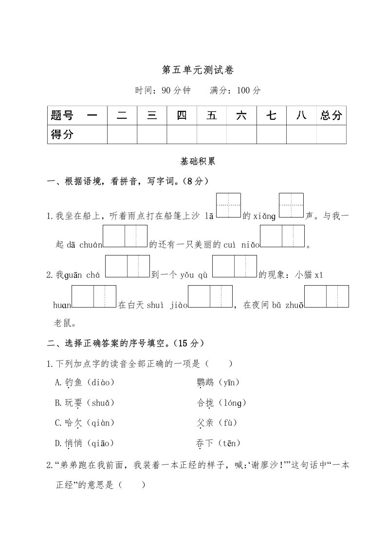 三年级语文上册第五单元测试卷(部编版)_共7页