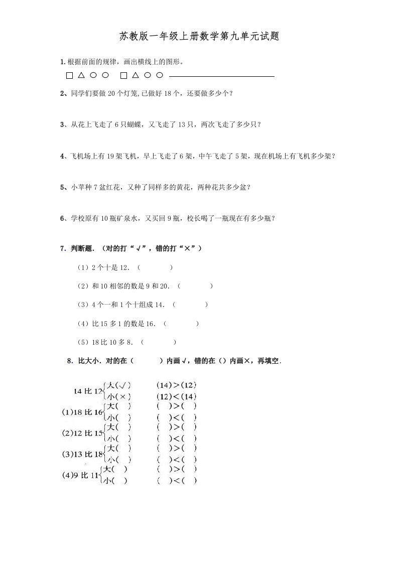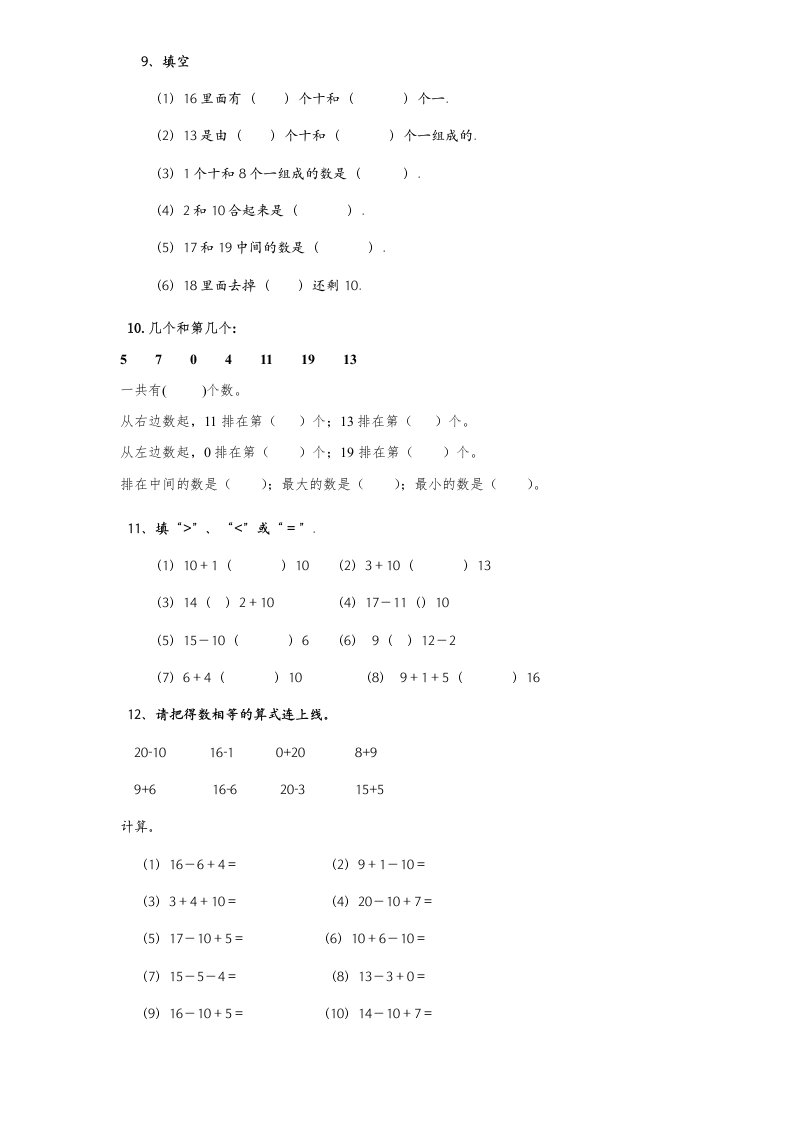一年级数学上册《第9单元试题》认识11~20各数(4)(苏教版)_共5页