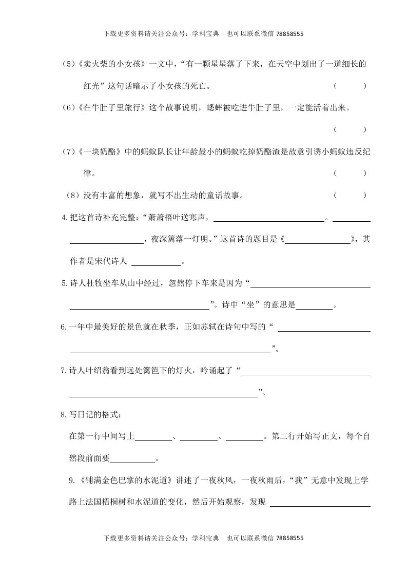 当前位置: 首页小学资源小学三年级正文 三年级语文上册复习——背诵与积累(部编版)_共3页 小学三年级 1 周前 0 0 5 以上为部分内容预览,如需源文档请登录您的会员账号进行下载! 声明:本站所有文章,如无特殊说明或标注,均为本站原创发布。任何个人或组织,在未征得本站同意时,禁止复制、盗用、采集、发布本站内容到任何网站、书籍等各类媒体平台。如若本站内容侵犯了原著者的合法权益,可联系我们进行处理。 尚学资源永久会员 打赏 收藏 海报 链接