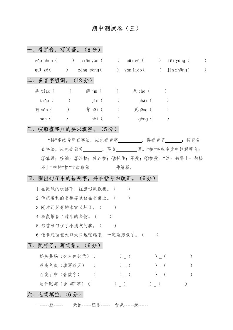 三年级语文上册期中测试版(6)(部编版)_共6页