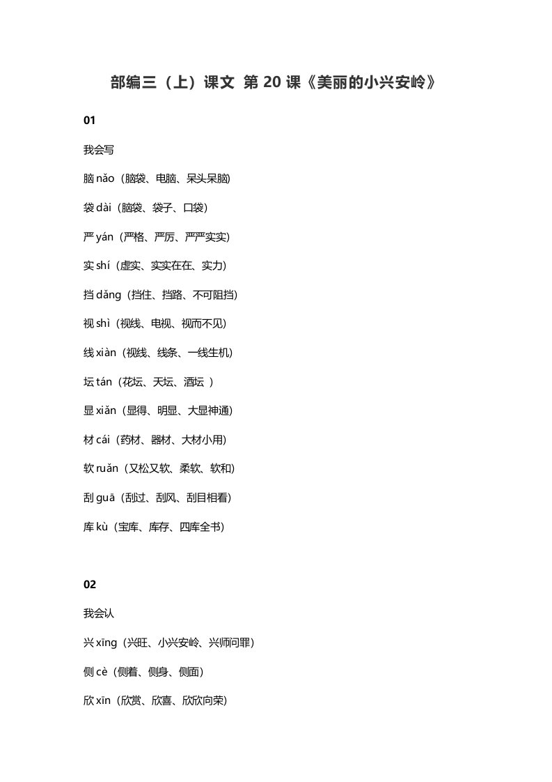 当前位置: 首页小学资源小学三年级正文 三年级语文上册21三(上)课文第20课《美丽的小兴安岭》(部编版)_共6页 小学三年级 1 周前 0 0 5 以上为部分内容预览,如需源文档请登录您的会员账号进行下载! 声明:本站所有文章,如无特殊说明或标注,均为本站原创发布。任何个人或组织,在未征得本站同意时,禁止复制、盗用、采集、发布本站内容到任何网站、书籍等各类媒体平台。如若本站内容侵犯了原著者的合法权益,可联系我们进行处理。 尚学资源永久会员 打赏 收藏 海报 链接