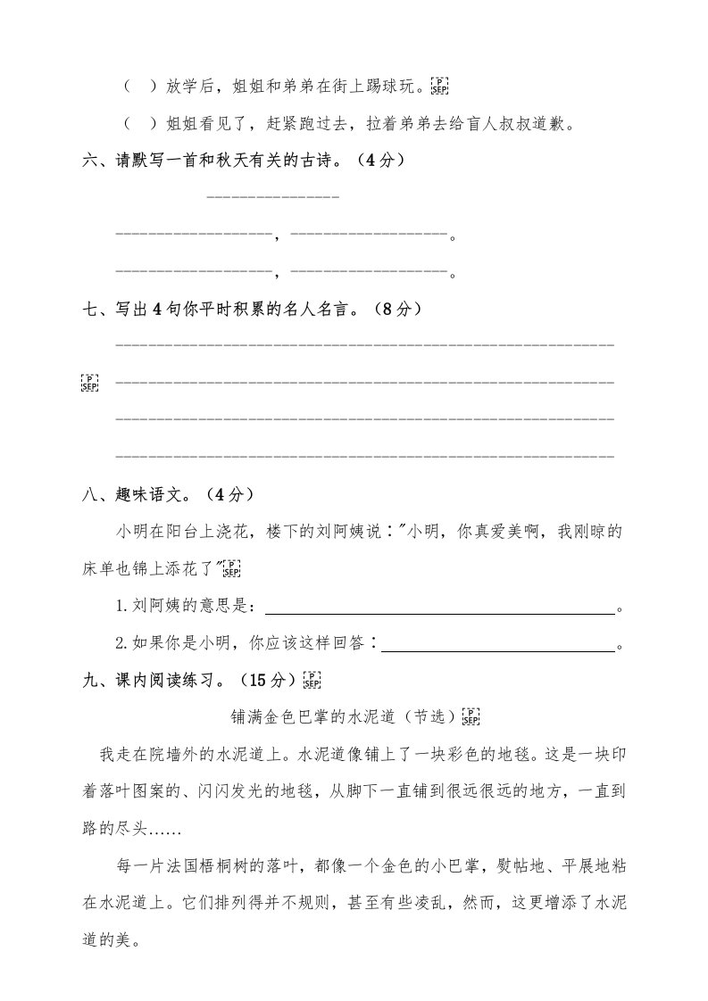 当前位置: 首页小学资源小学三年级正文 三年级语文上册期中测试版(9)(部编版)_共6页 小学三年级 1 周前 0 0 5 以上为部分内容预览,如需源文档请登录您的会员账号进行下载! 声明:本站所有文章,如无特殊说明或标注,均为本站原创发布。任何个人或组织,在未征得本站同意时,禁止复制、盗用、采集、发布本站内容到任何网站、书籍等各类媒体平台。如若本站内容侵犯了原著者的合法权益,可联系我们进行处理。 尚学资源永久会员 打赏 收藏 海报 链接