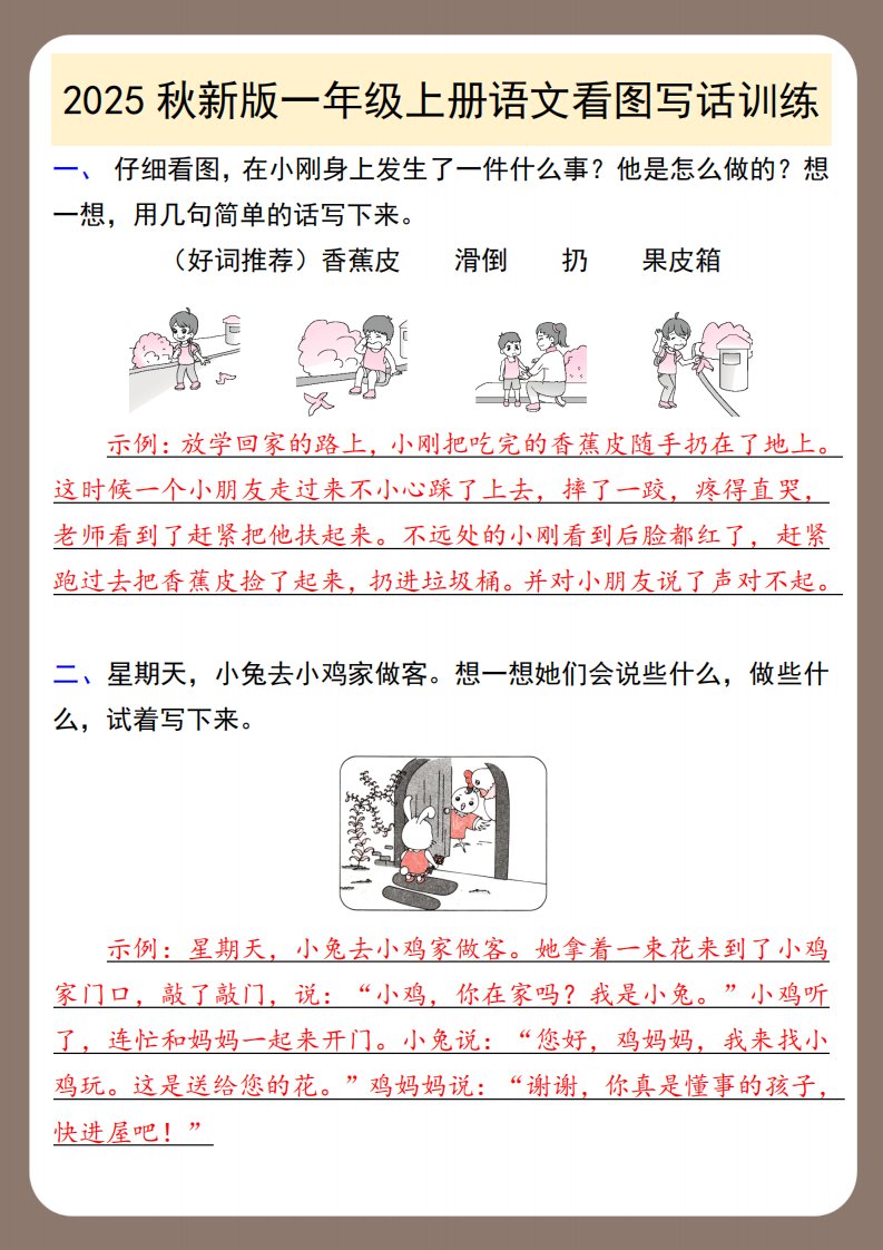 【2025秋新版】一年级上册语文看图写话训练_共3页