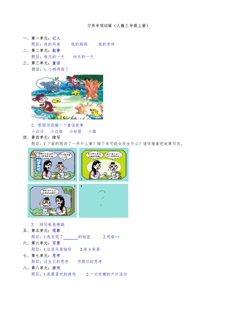 当前位置: 首页小学资源小学三年级正文 三年级语文上册习作专项(部编版)_共28页 小学三年级 1 周前 0 0 15 以上为部分内容预览,如需源文档请登录您的会员账号进行下载! 声明:本站所有文章,如无特殊说明或标注,均为本站原创发布。任何个人或组织,在未征得本站同意时,禁止复制、盗用、采集、发布本站内容到任何网站、书籍等各类媒体平台。如若本站内容侵犯了原著者的合法权益,可联系我们进行处理。 尚学资源永久会员 打赏 收藏 海报 链接