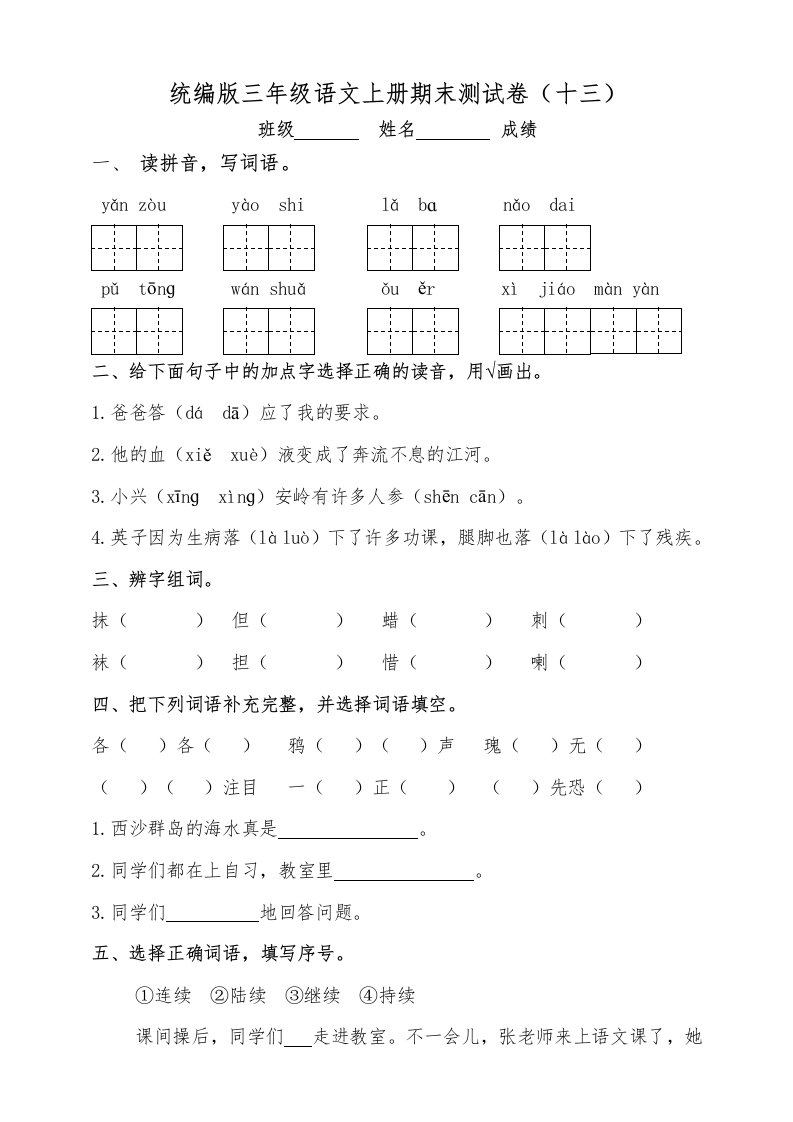 当前位置: 首页小学资源小学三年级正文 三年级语文上册(期末测试题)版(7)(部编版)_共5页 小学三年级 1 周前 0 0 5 以上为部分内容预览,如需源文档请登录您的会员账号进行下载! 声明:本站所有文章,如无特殊说明或标注,均为本站原创发布。任何个人或组织,在未征得本站同意时,禁止复制、盗用、采集、发布本站内容到任何网站、书籍等各类媒体平台。如若本站内容侵犯了原著者的合法权益,可联系我们进行处理。 尚学资源永久会员 打赏 收藏 海报 链接