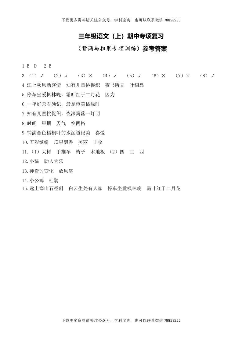 当前位置: 首页小学资源小学三年级正文 三年级语文上册复习——背诵与积累__extracted(部编版)_共1页 小学三年级 1 周前 0 0 5 以上为部分内容预览,如需源文档请登录您的会员账号进行下载! 声明:本站所有文章,如无特殊说明或标注,均为本站原创发布。任何个人或组织,在未征得本站同意时,禁止复制、盗用、采集、发布本站内容到任何网站、书籍等各类媒体平台。如若本站内容侵犯了原著者的合法权益,可联系我们进行处理。 尚学资源永久会员 打赏 收藏 海报 链接