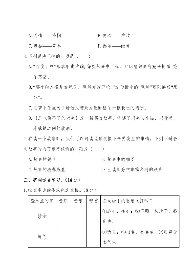 当前位置: 首页小学资源小学三年级正文 三年级语文上册第四单元测试卷(部编版)_共8页 小学三年级 1 周前 0 0 5 以上为部分内容预览,如需源文档请登录您的会员账号进行下载! 声明:本站所有文章,如无特殊说明或标注,均为本站原创发布。任何个人或组织,在未征得本站同意时,禁止复制、盗用、采集、发布本站内容到任何网站、书籍等各类媒体平台。如若本站内容侵犯了原著者的合法权益,可联系我们进行处理。 尚学资源永久会员 打赏 收藏 海报 链接