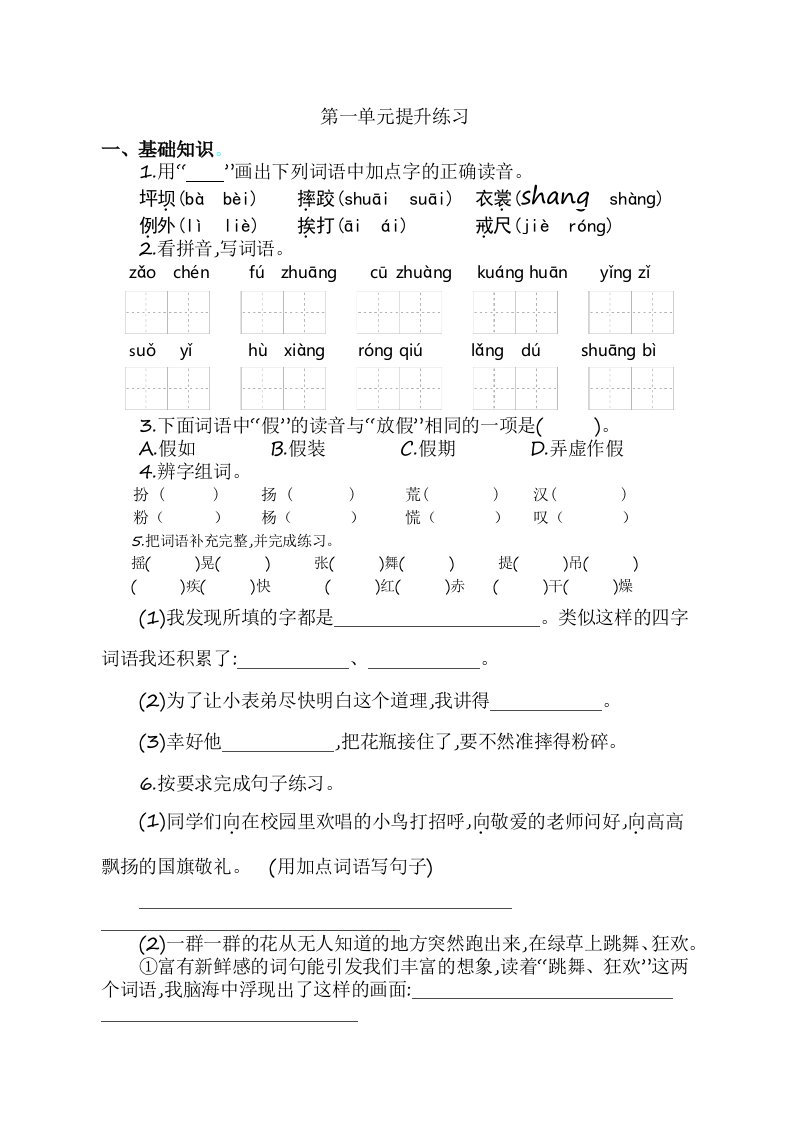 当前位置: 首页小学资源小学三年级正文 三年级语文上册第一单元提升练习(部编版)_共4页 小学三年级 1 周前 0 0 5 以上为部分内容预览,如需源文档请登录您的会员账号进行下载! 声明:本站所有文章,如无特殊说明或标注,均为本站原创发布。任何个人或组织,在未征得本站同意时,禁止复制、盗用、采集、发布本站内容到任何网站、书籍等各类媒体平台。如若本站内容侵犯了原著者的合法权益,可联系我们进行处理。 尚学资源永久会员 打赏 收藏 海报 链接