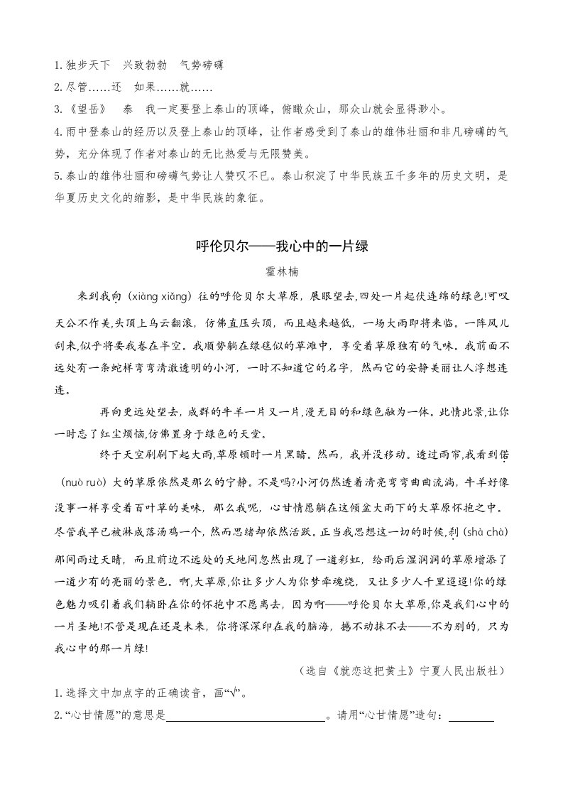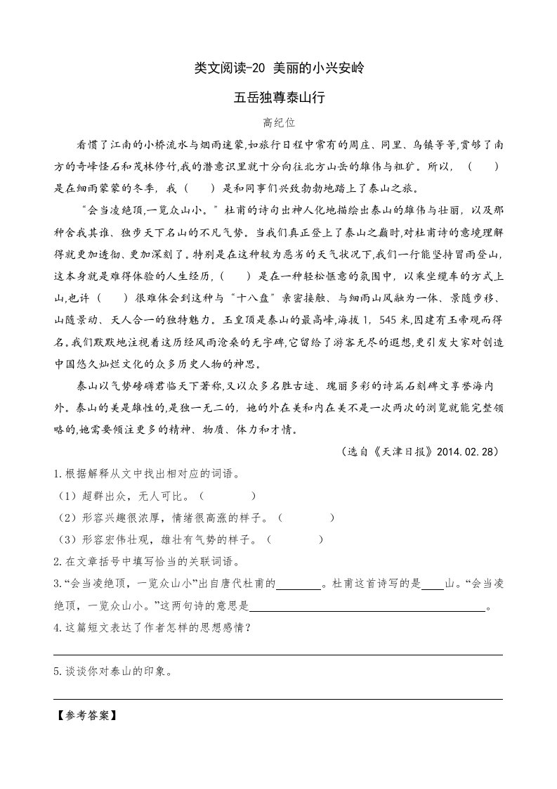 三年级语文上册类文阅读20美丽的小兴安岭(部编版)_共3页
