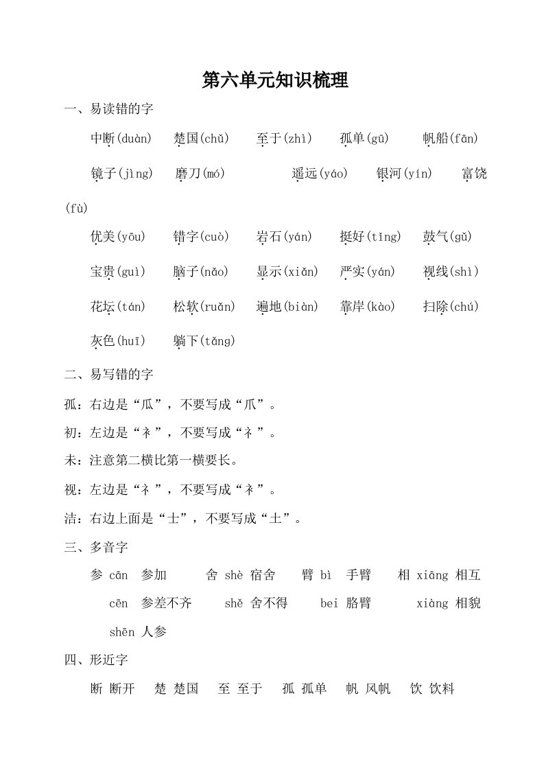 三年级语文上册第六单元知识梳理(部编版)_共5页