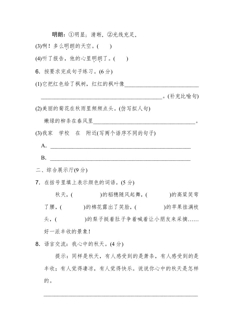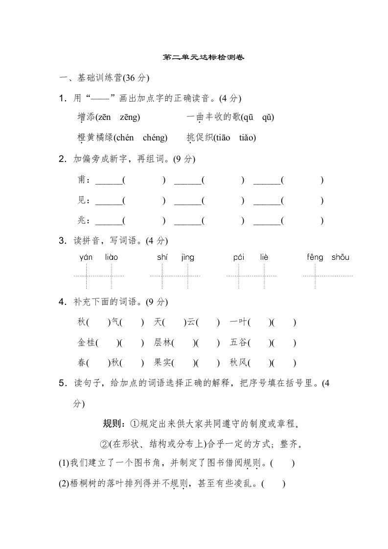 三年级语文上册第二单元达标检测卷(二)(部编版)_共8页