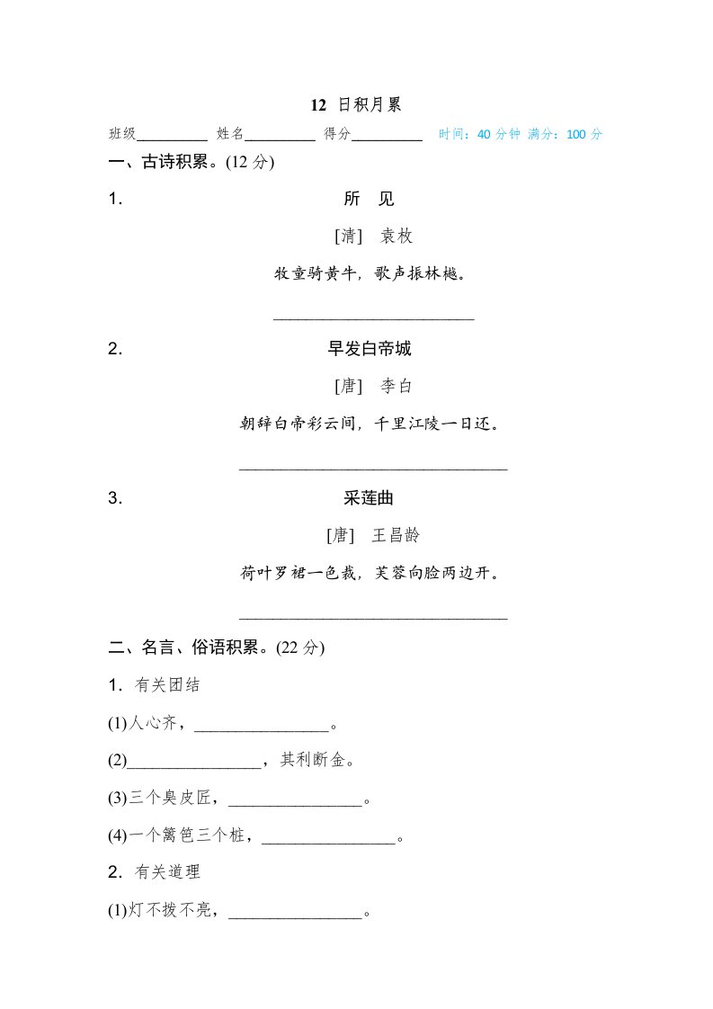 当前位置: 首页小学资源小学三年级正文 三年级语文上册12日积月累(部编版)_共6页 小学三年级 1 周前 0 0 5 以上为部分内容预览,如需源文档请登录您的会员账号进行下载! 声明:本站所有文章,如无特殊说明或标注,均为本站原创发布。任何个人或组织,在未征得本站同意时,禁止复制、盗用、采集、发布本站内容到任何网站、书籍等各类媒体平台。如若本站内容侵犯了原著者的合法权益,可联系我们进行处理。 尚学资源永久会员 打赏 收藏 海报 链接