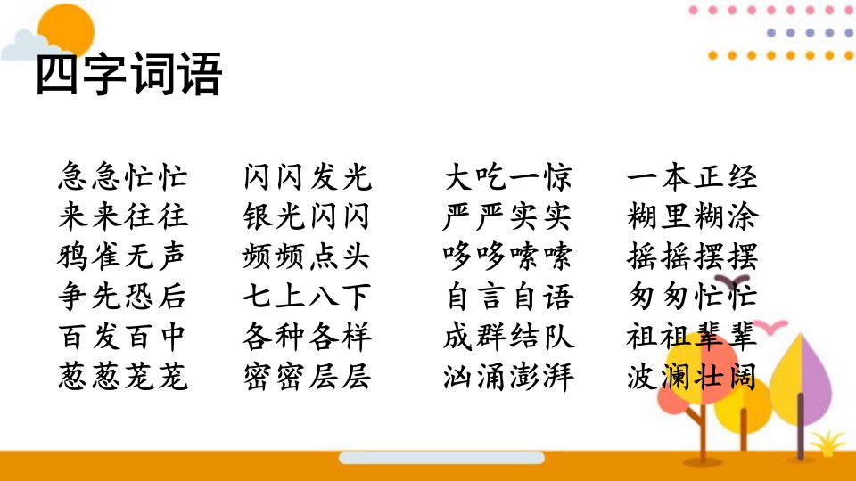 当前位置: 首页小学资源小学三年级正文 三年级语文上册词语专项复习(部编版)_共22页 小学三年级 1 周前 0 0 15 以上为部分内容预览,如需源文档请登录您的会员账号进行下载! 声明:本站所有文章,如无特殊说明或标注,均为本站原创发布。任何个人或组织,在未征得本站同意时,禁止复制、盗用、采集、发布本站内容到任何网站、书籍等各类媒体平台。如若本站内容侵犯了原著者的合法权益,可联系我们进行处理。 尚学资源永久会员 打赏 收藏 海报 链接