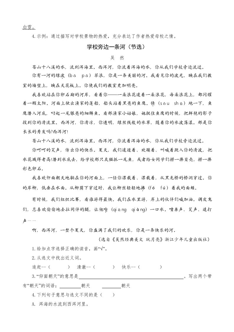 当前位置: 首页小学资源小学三年级正文 三年级语文上册类文阅读1大青树下的(部编版)_共3页 小学三年级 1 周前 0 0 5 以上为部分内容预览,如需源文档请登录您的会员账号进行下载! 声明:本站所有文章,如无特殊说明或标注,均为本站原创发布。任何个人或组织,在未征得本站同意时,禁止复制、盗用、采集、发布本站内容到任何网站、书籍等各类媒体平台。如若本站内容侵犯了原著者的合法权益,可联系我们进行处理。 尚学资源永久会员 打赏 收藏 海报 链接