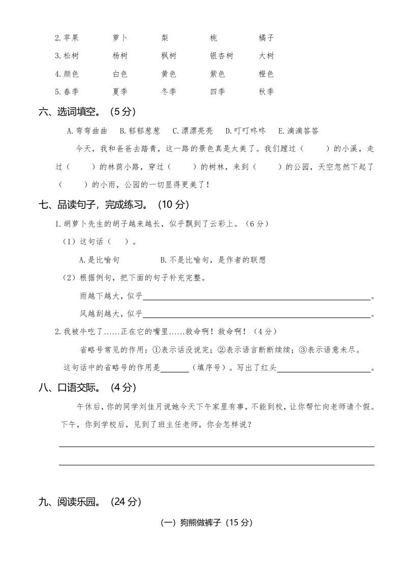 当前位置: 首页小学资源小学三年级正文 三年级语文上册第二次月考卷(部编版)_共5页 小学三年级 1 周前 0 0 5 以上为部分内容预览,如需源文档请登录您的会员账号进行下载! 声明:本站所有文章,如无特殊说明或标注,均为本站原创发布。任何个人或组织,在未征得本站同意时,禁止复制、盗用、采集、发布本站内容到任何网站、书籍等各类媒体平台。如若本站内容侵犯了原著者的合法权益,可联系我们进行处理。 尚学资源永久会员 打赏 收藏 海报 链接