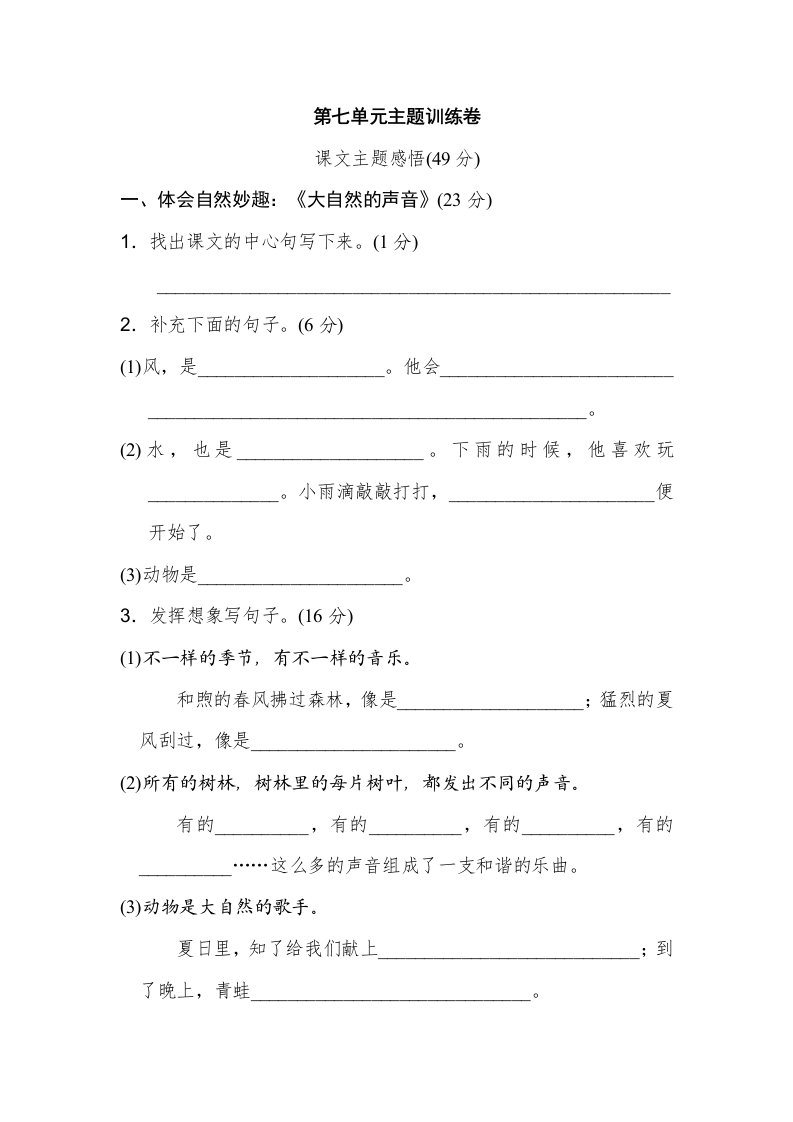 三年级语文上册第七单元主题训练卷(部编版)_共10页