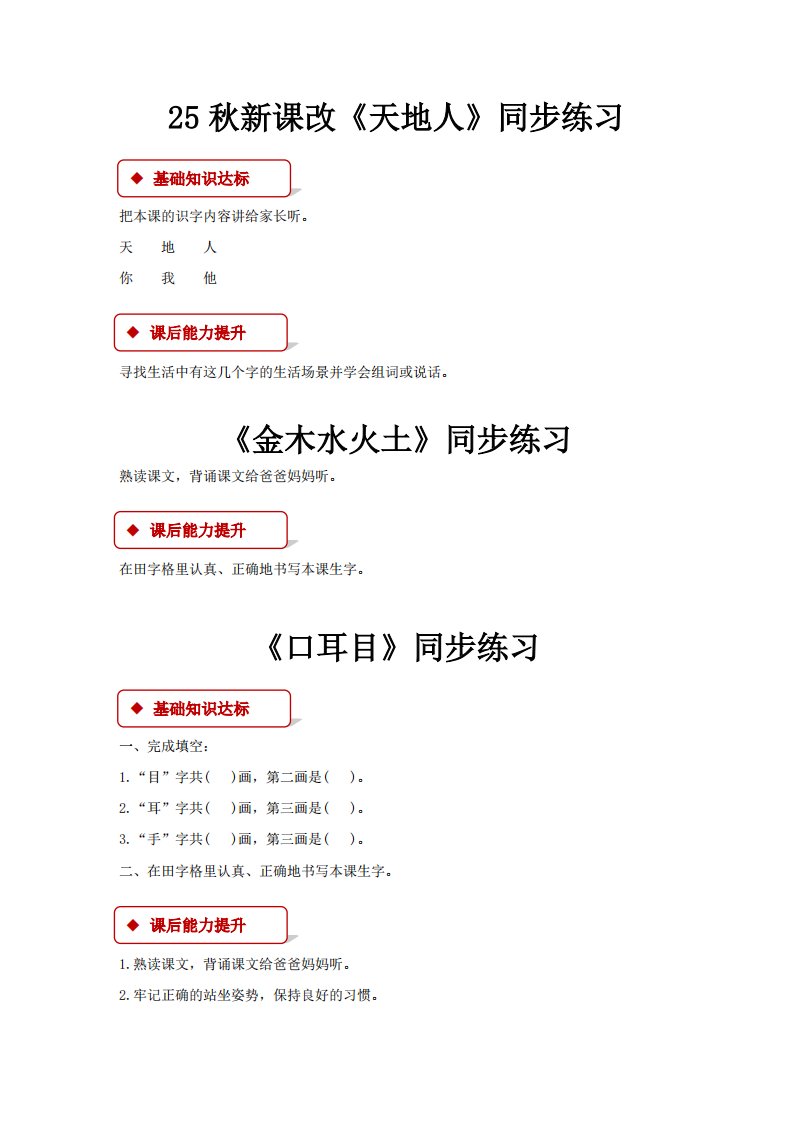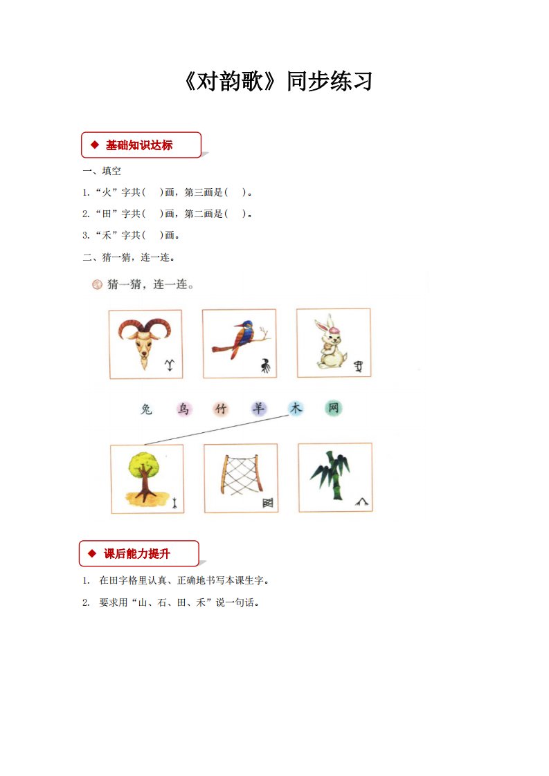 【2025秋新版】部编版语文一年级上全册同步课课练(含答案)_共36页