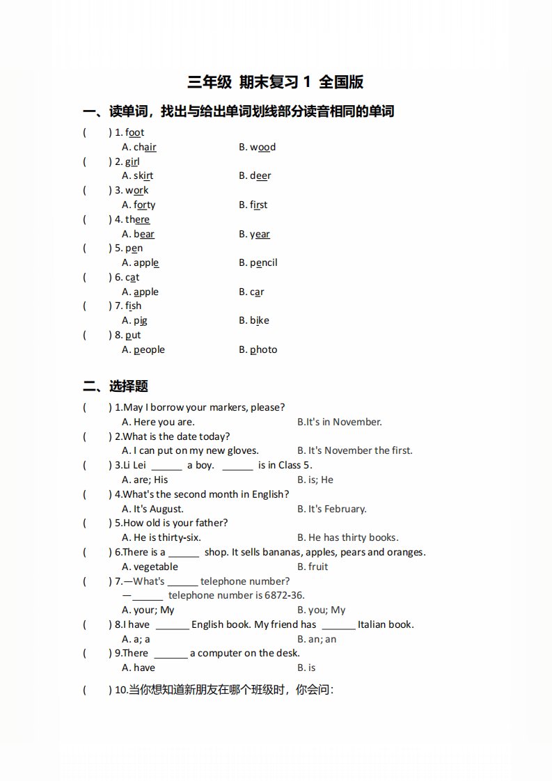 当前位置: 首页小学资源小学三年级正文 三上英语(全国版英语)三年级期末复习_共10页 小学三年级 1 周前 0 0 5 以上为部分内容预览,如需源文档请登录您的会员账号进行下载! 声明:本站所有文章,如无特殊说明或标注,均为本站原创发布。任何个人或组织,在未征得本站同意时,禁止复制、盗用、采集、发布本站内容到任何网站、书籍等各类媒体平台。如若本站内容侵犯了原著者的合法权益,可联系我们进行处理。 尚学资源永久会员 打赏 收藏 海报 链接